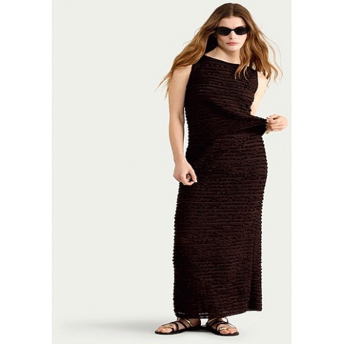 Textured Co-ord Midi Skirt in Brown