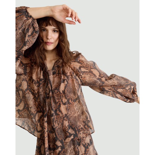 Snake Print Handkerchief Hem Midi Skirt in Multi Brown