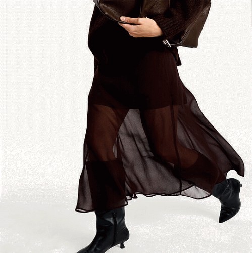 The F&F Edit Satin Slip Midi Skirt in Brown