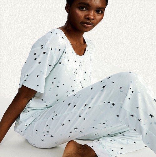 Star Print Short Sleeved Pyjama Top in Multi Blue