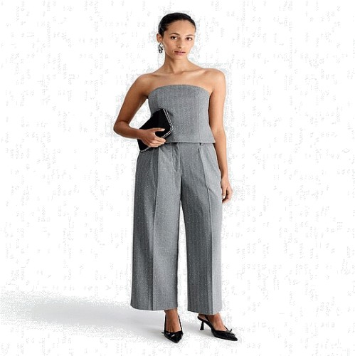 Herringbone Print Wide Leg Co-ord Trousers in Grey