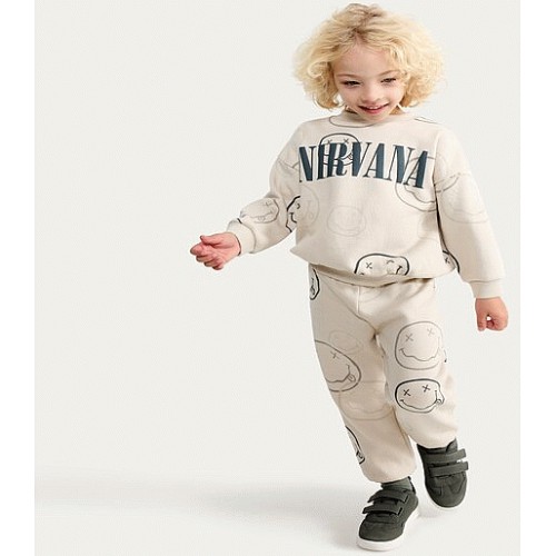 Nirvana Smiley Print Sweatshirt and Joggers Set in Cream