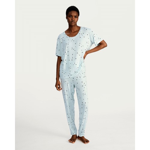 Star Print Short Sleeved Pyjama Top in Multi Blue