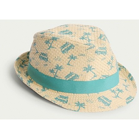 Baby Straw Palm Print Trilby Hat in Neutral