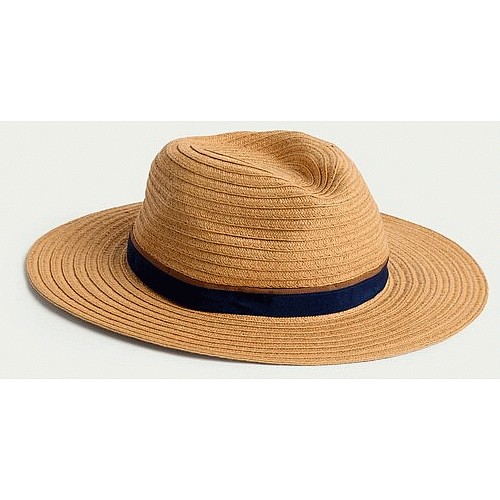 Straw Ribbon Trim Trilby Hat in Neutral
