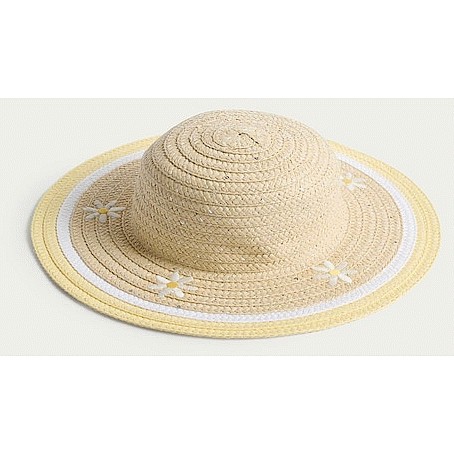 Girls Straw Daisy Embroidered Hat in Neutral
