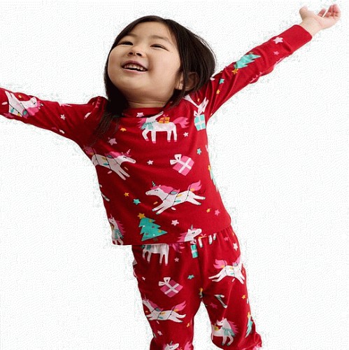 Girls Pure Cotton Christmas Unicorn Top and Cuffed Joggers Pyjamas in Red Multi