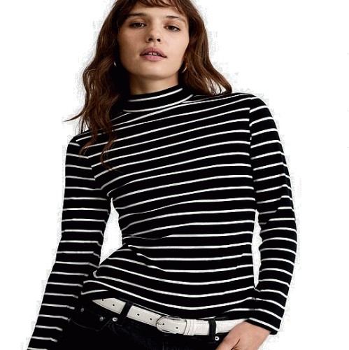 Cotton Rich Stripe Print High Neck Top in Multi Black White