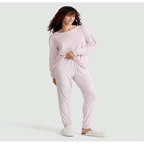 Stripe Print Long Sleeved Top and Joggers Pyjamas in Multi Pink