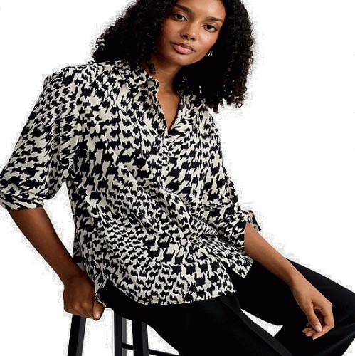 Cotton Rich Stripe Print Long Sleeved Top in Multi Black