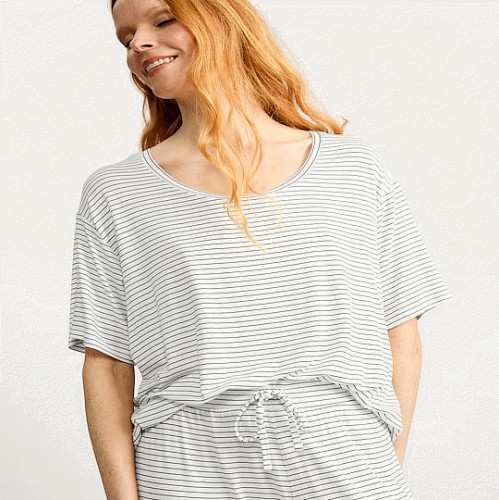 Stripe Print Rugby Shirt and Trousers Pyjamas in Cream