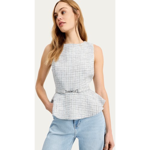 Boucle Textured Peplum Hem Sleeveless Top in Blue
