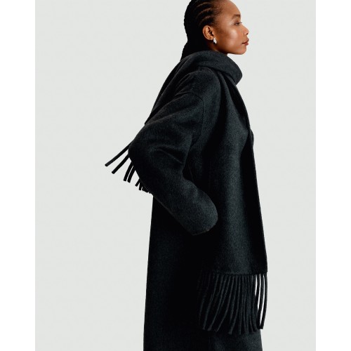 Wool Blend Fringed Scarf Formal Coat in Grey
