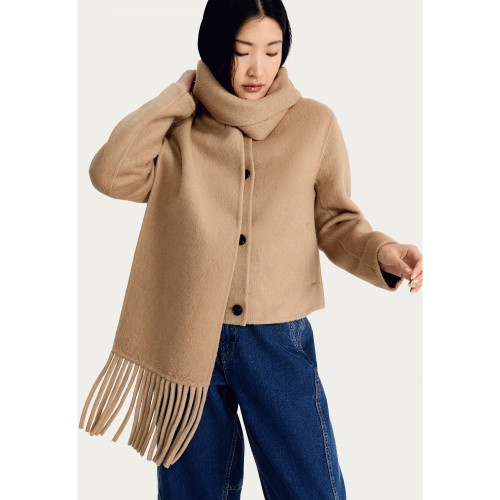 The F&F Edit Fringed Scarf Coat with Wool in Med Nude