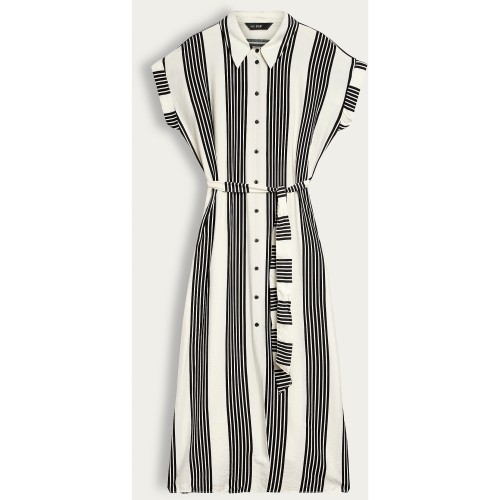Textured Stripe Print Midi Shirt Dress in Multi Black White