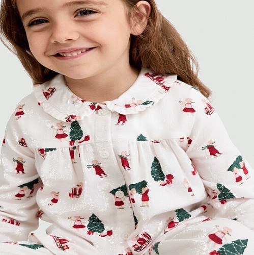 Girls Pure Cotton Christmas Print Shirt and Trousers Pyjamas in Multi