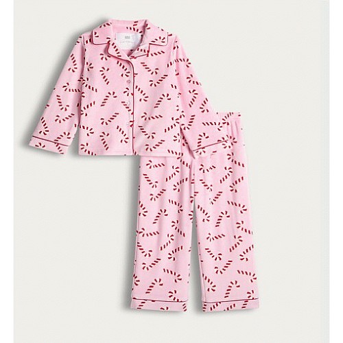 Girls Candy Cane Print Shirt and Trousers Pyjamas in Pink