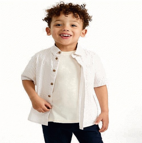 F&F Boys Textured Shirt and T-Shirt Set in Cream