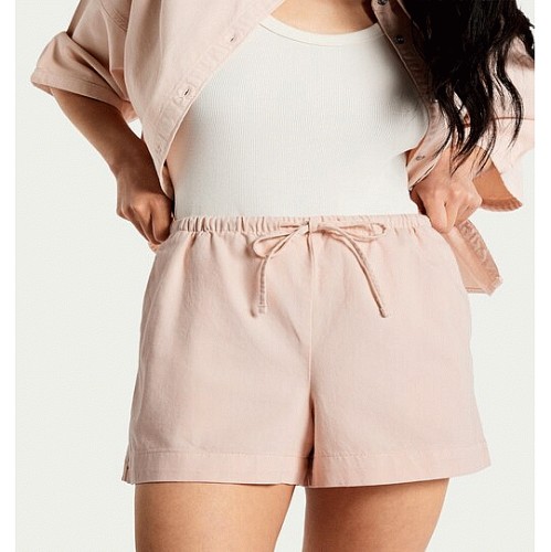 Cotton Rich Drawstring Co-ord Denim Shorts in Pink