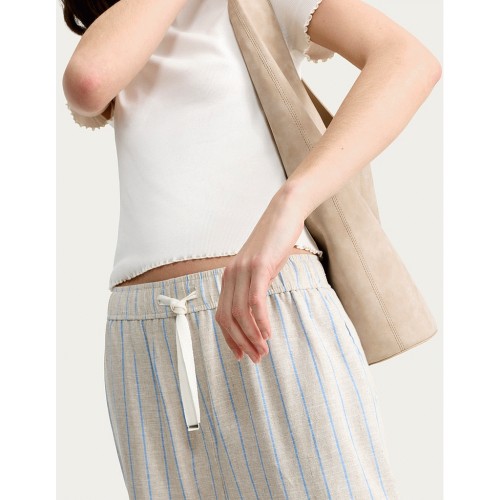 Striped Drawstring Wide Leg Trousers with Linen in Cream