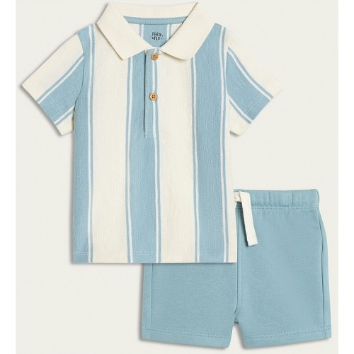 2-Piece Textured Striped Polo Shirt and Shorts Set in Multi