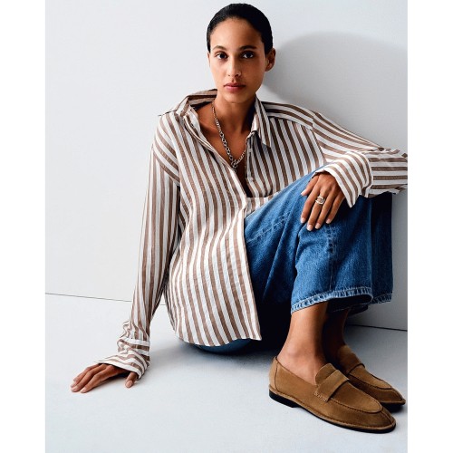 Textured Striped Tie Waist Shirt in Neutral