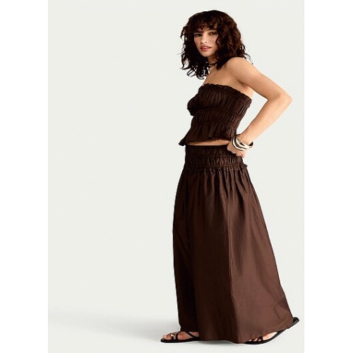 Cotton Rich Smocked Waist Co-ord Maxi Skirt in Chocolate