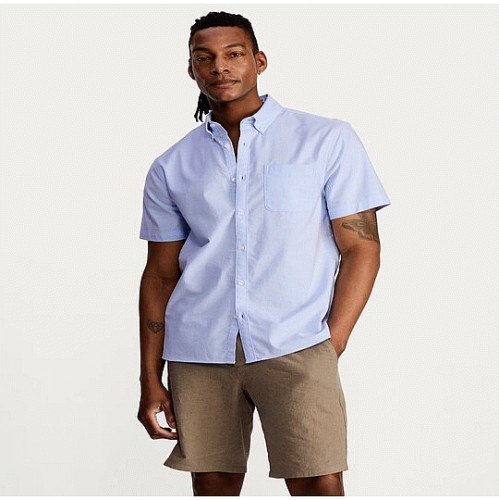Regular Fit Short Sleeve Oxford Shirt in Blue