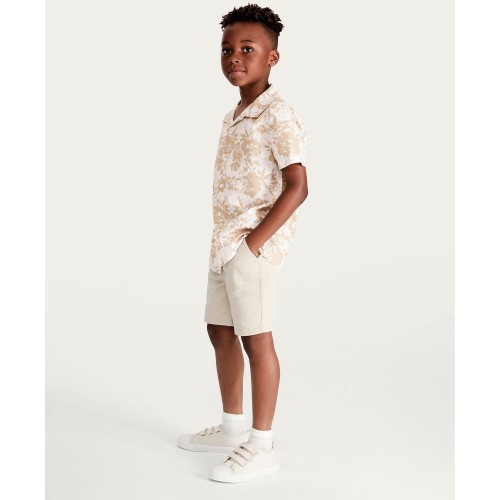 F&F Boys Pure Cotton Floral Print Short Sleeve Shirt in Stone