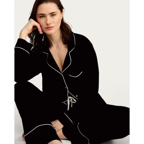 Long Sleeve Revere Pyjama Set in Black
