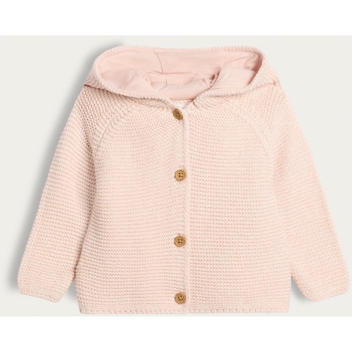 Pure Cotton Knitted Button Front Hooded Cardigan in Multi Pink