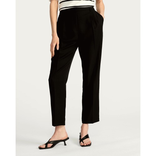 Double Pleat Tapered Trousers in Black