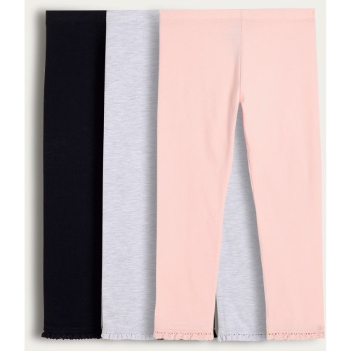 F&F Girls Cotton Rich 3-Pack Lace Trim Leggings in Multi Pink