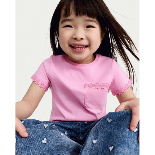 F&F Girls Pure Cotton Floral Trim T-Shirt in Pink