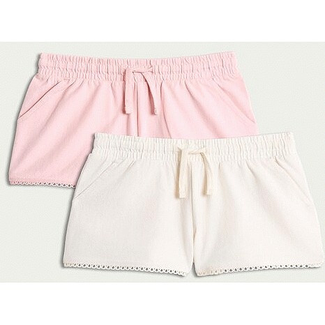 F&F Girls 2-Pack Pure Cotton Lace Trim Shorts in Multi Pink