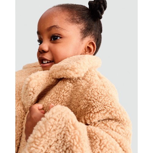 F&F Girls Fleece Textured Teddy Coat in Light Nude