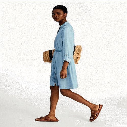 TENCEL Button Front Belted Mini Shirt Dress in Blue