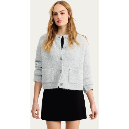 Knitted Button Front Cardigan with Wool in Grey