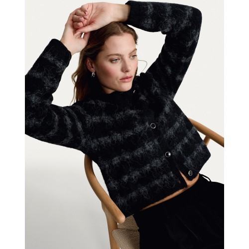Textured Button Up Cardigan in Black