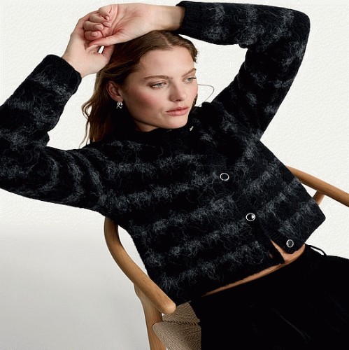 Textured Check Print Button Up Cardigan in Multi Black