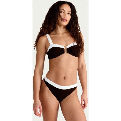 Textured Contrast Trim High Leg Bikini Bottoms in Brown