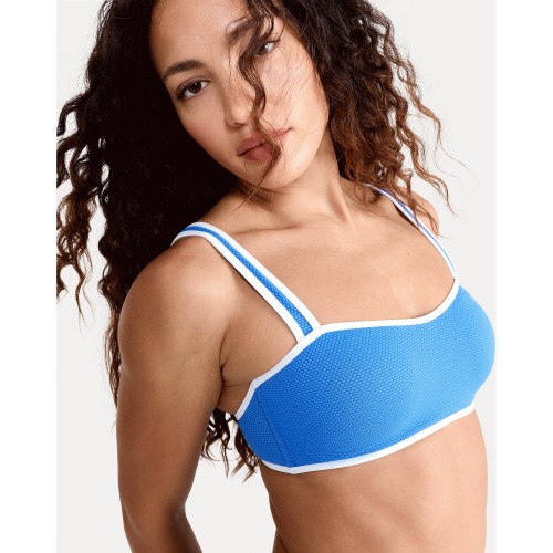 Textured Contrast Trim Co-ord Bikini Top in Navy