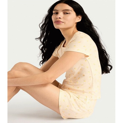 Textured Lemon Print Short Pyjama Set in Multi Yellow