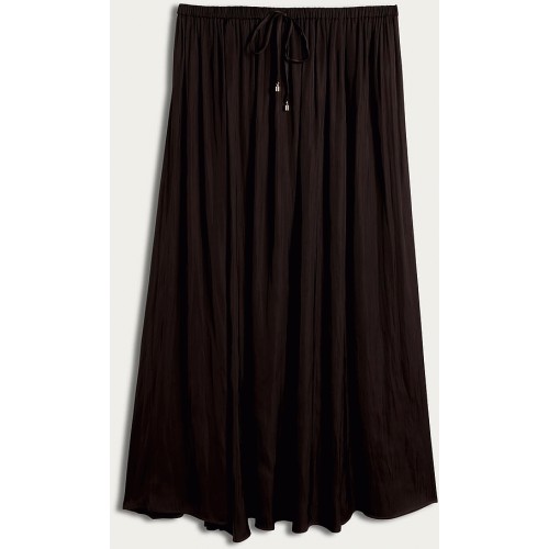 Satin Drawstring Waist Midi Skirt in Chocolate
