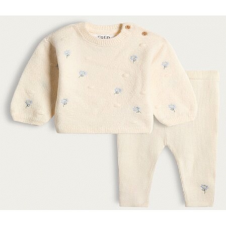 2-Piece Knitted Floral Embroidered Jumper and Legging Set in Cream