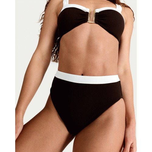 Textured Contrast Trim High Waisted Bikini Bottoms in Brown