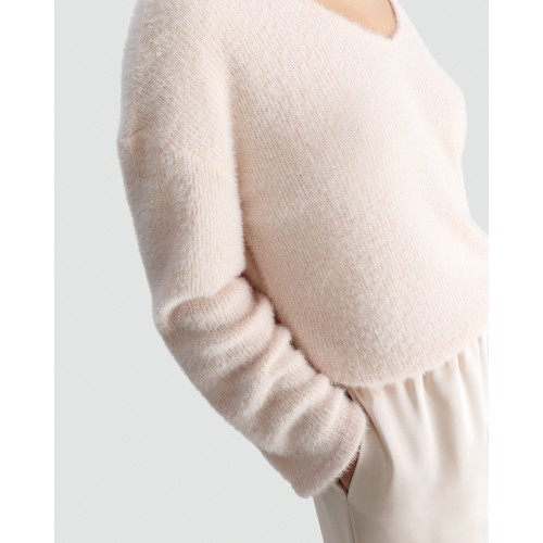 Textured Jumper and Satin Bottoms Pyjama Set in Cream