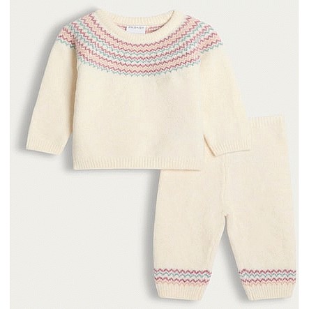 2-Piece Fairisle Knitted Jumper and Trousers Set in Cream