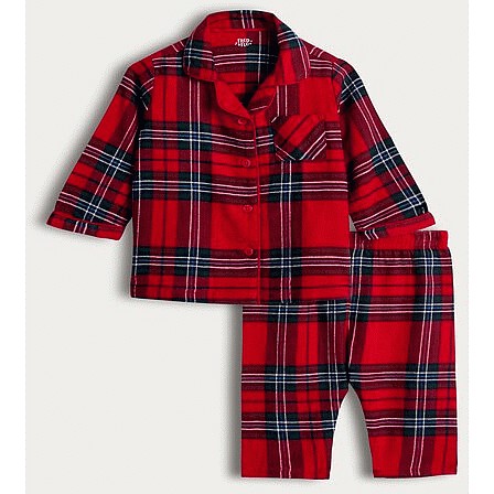 Cotton Blend Tartan Shirt and Trousers Pyjamas in Red
