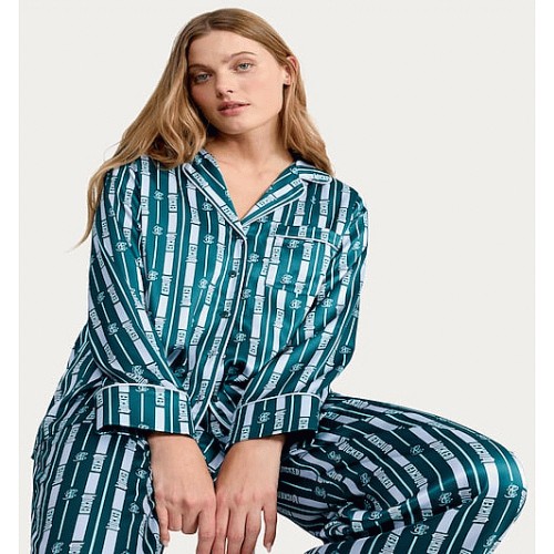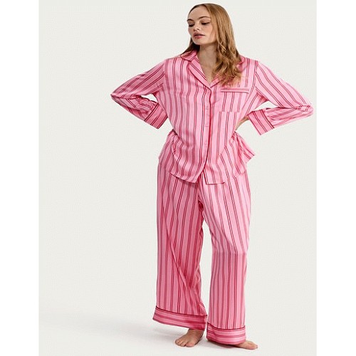 Satin Stripe Print Shirt and Trousers Pyjamas in Multi Pink